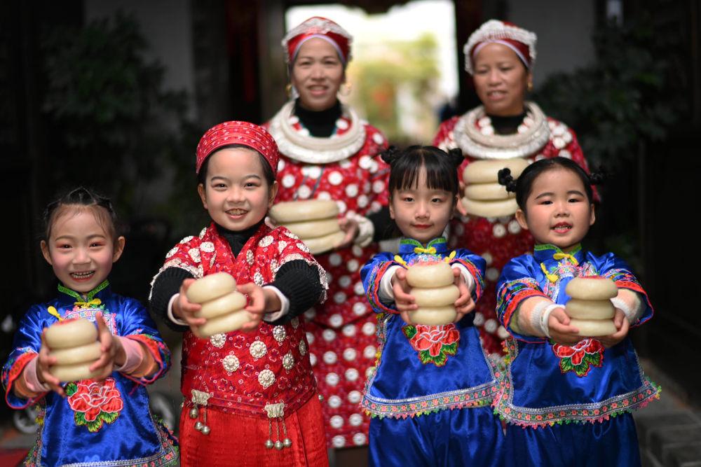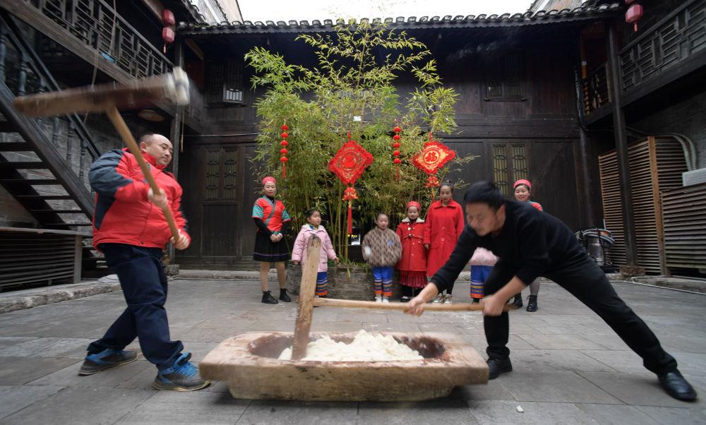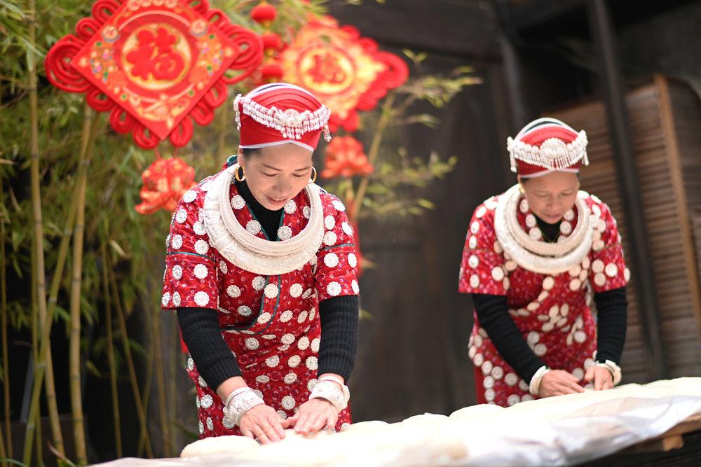 当日,在贵州省黔东南苗族侗族自治州黄平县旧州古镇,当地村民蒸香糯、打糍粑,喜气洋洋地迎接农历新年的到来。