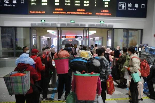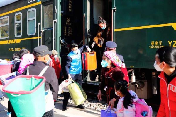 1月15日,云南楚雄彝族自治州,当昆明开往元谋西的7466次“慢火车”抵达龙骨甸站时,站台上已有大批老乡等待上车。