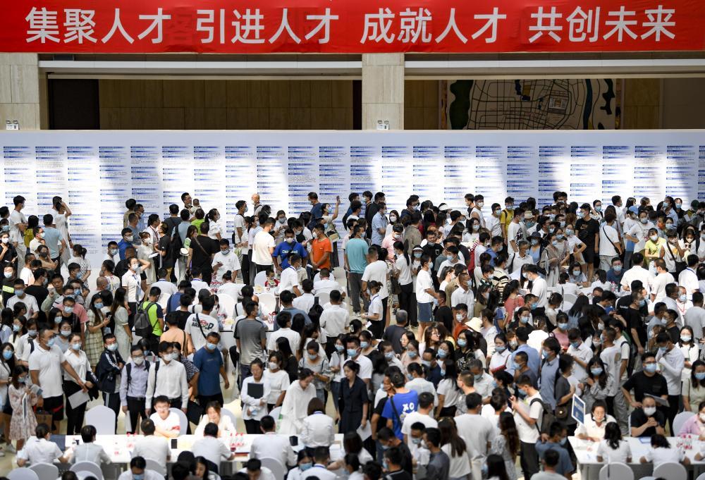 这是宁夏银川万人专场招聘会现场(2022年8月20日摄)。新华社记者 冯开华 摄