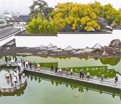 大年初一,游人在江苏苏州博物馆山水庭园畅游。王建中摄(影像中国)