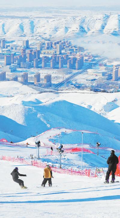 大年初一,滑雪爱好者在新疆阿勒泰市将军山滑雪场滑雪。阿尔达克·拜斯汗摄(影像中国)