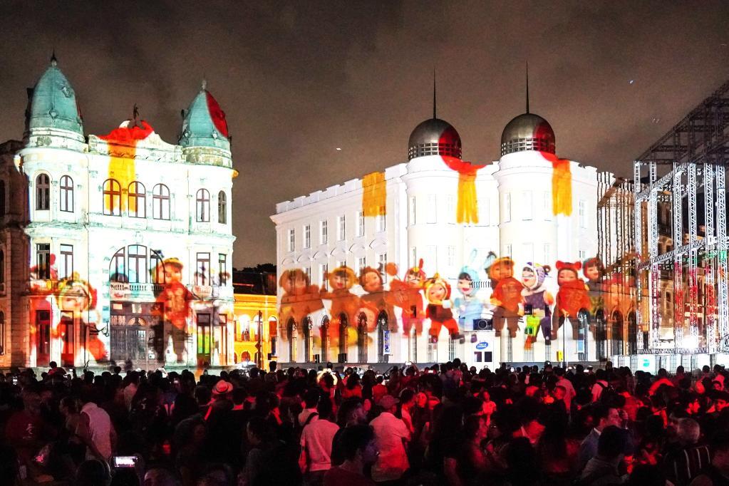 1月19日,人们在巴西累西腓市举行的中国春节庆祝活动上欣赏灯光秀。(新华社发,保罗·洛佩斯摄)