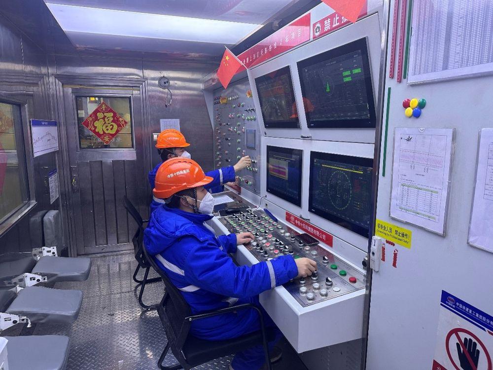 在中铁十四局上海机场联络线2标段施工现场,盾构机长正操作盾构机不断掘进。(受访者供图)