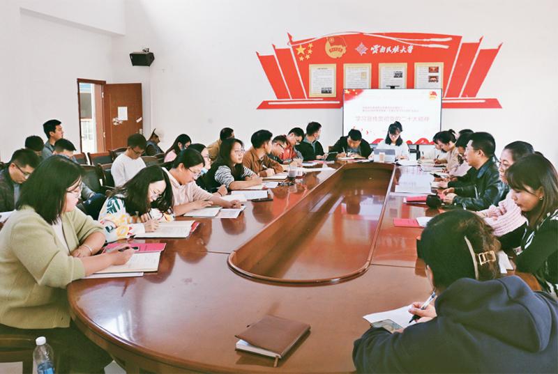 图为2022年11月15日,云南民族大学团委召开会议,专题学习党的二十大精神。 云南民族大学团委供图
