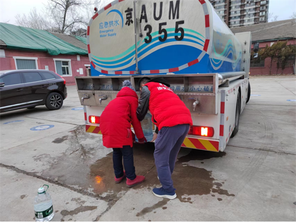 为缓解居民用水的燃眉之急,街道安排了临时供水车,志愿者们热心协助老人等有困难的居民打水、提水,确保大家在紧急情况下有水可用。