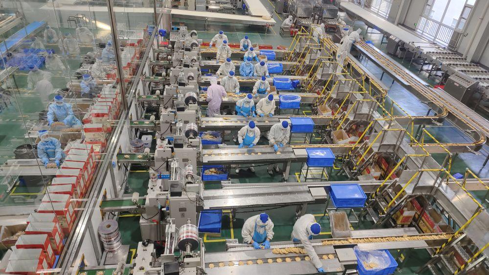 在海玉园的加工车间,工人们正在生产石头饼。(新华社记者 王劲玉摄)