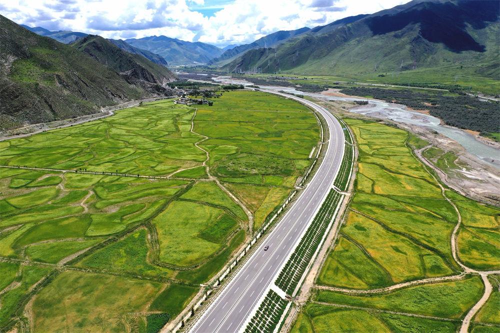 2019年8月16日拍摄的拉林公路一景(无人机照片)。新华社记者 普布扎西 摄