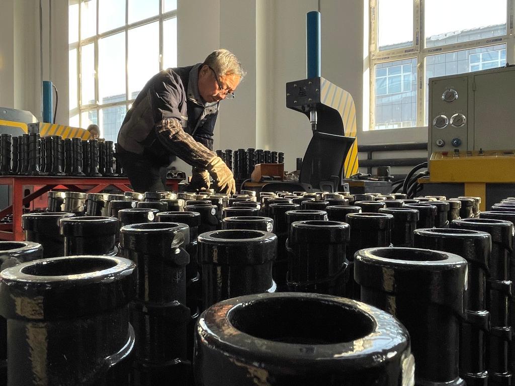 黑龙江省汤原县振华机械制造有限公司生产车间内,工人在进行作业。(新华社记者王鹤 摄)