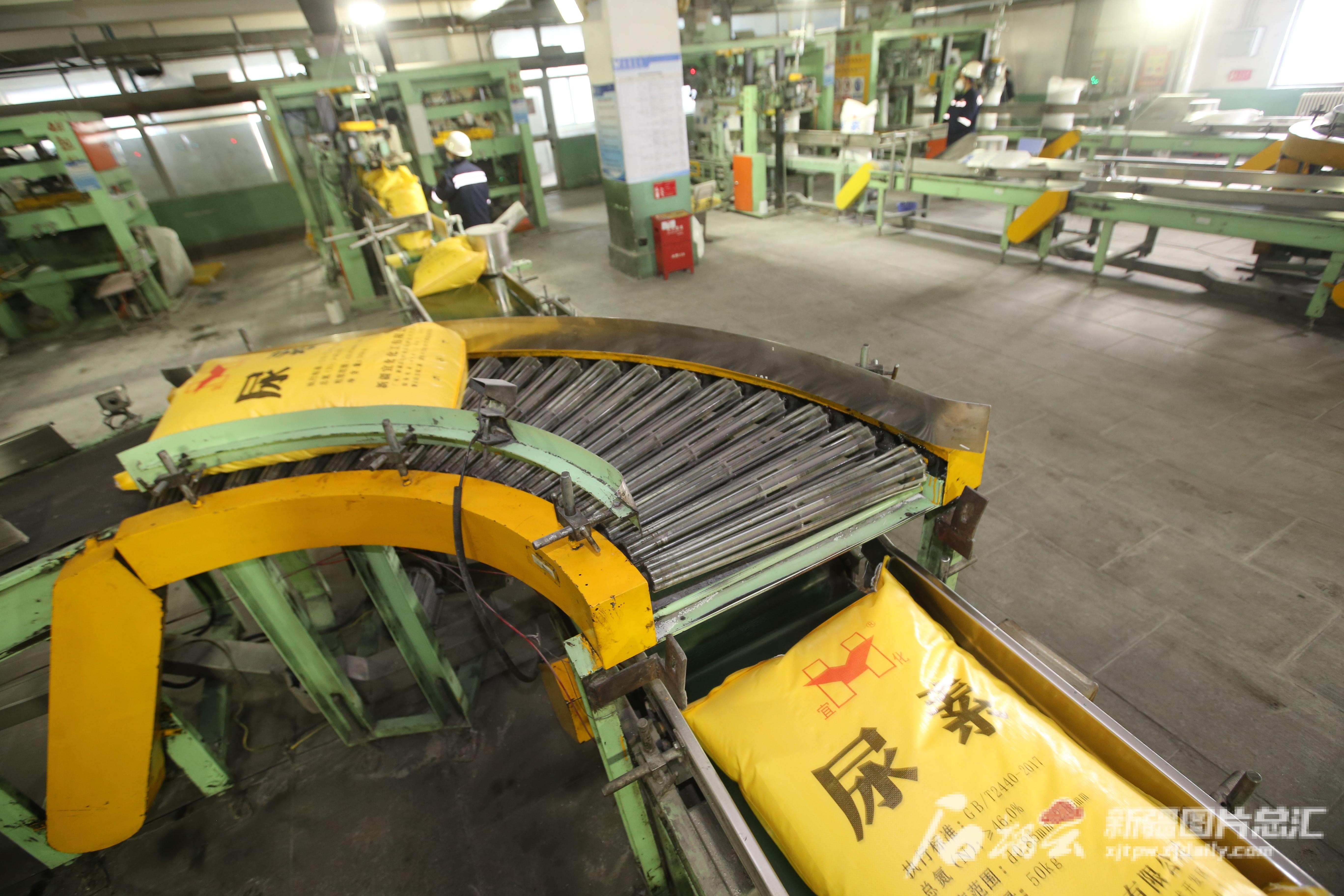 2月20日,新疆宜化化工有限公司尿素分厂生产车间,设备运转24小时不停,一袋袋尿素下线。王前喜摄