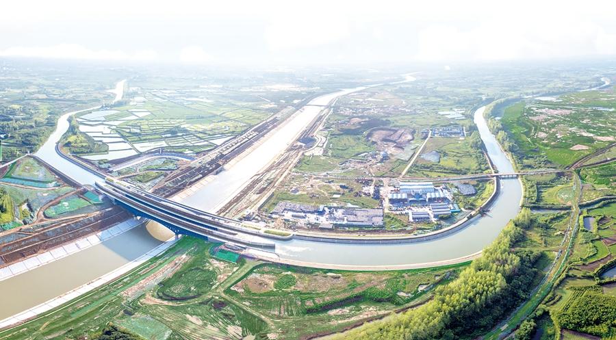 2022年9月,在合肥市肥西县境内,世界跨度最大的钢结构渡槽——引江济淮工程淠河总干渠钢结构渡槽首次通航,形成了“河上有河、船上行船”的奇观。