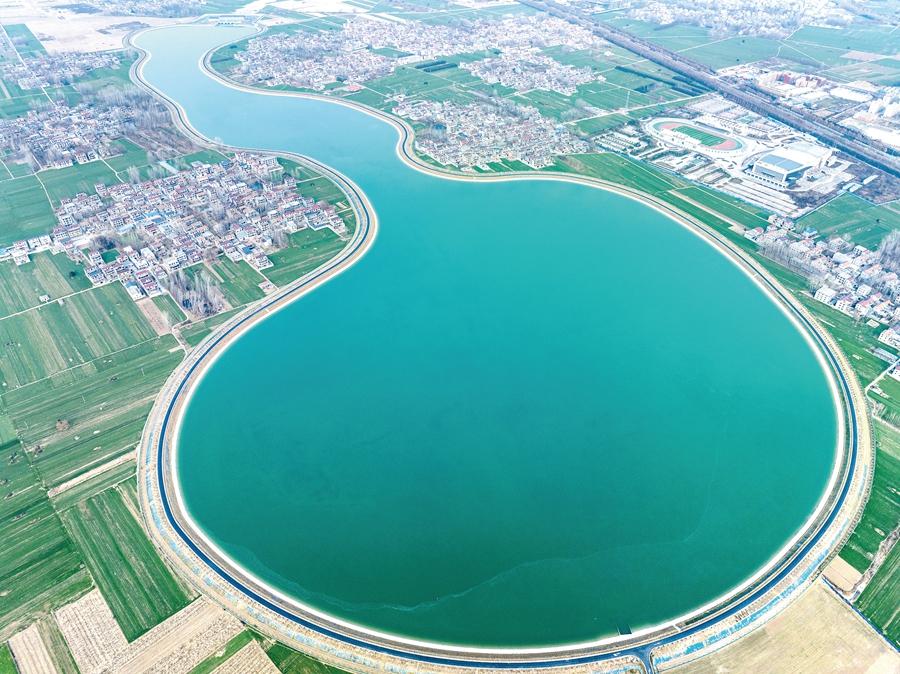 航拍引江济淮“宝葫芦”水库——鹿邑后陈楼水库。 (图片来源:视觉中国)