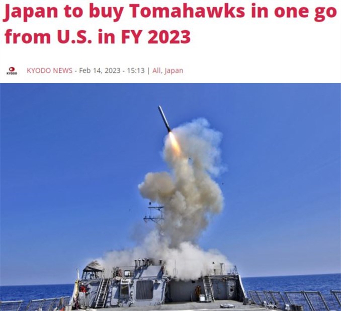 △日本共同社:日本防卫大臣浜田靖一近期宣布,日本政府将在2023财年与美国签订批量购买美制“战斧”巡航导弹的合同,并称“战斧”将作为攻击他国导弹基地的武器使用。