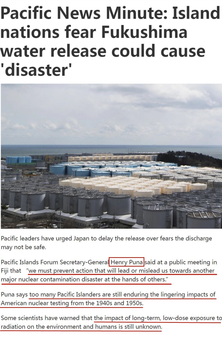 上个月,太平洋岛国论坛秘书长亨利·普纳在斐济举行的一次公开会议上表示,由于历史伤痛,论坛成员坚信,在各方确认安全之前,日本核污染水不应排放入海。