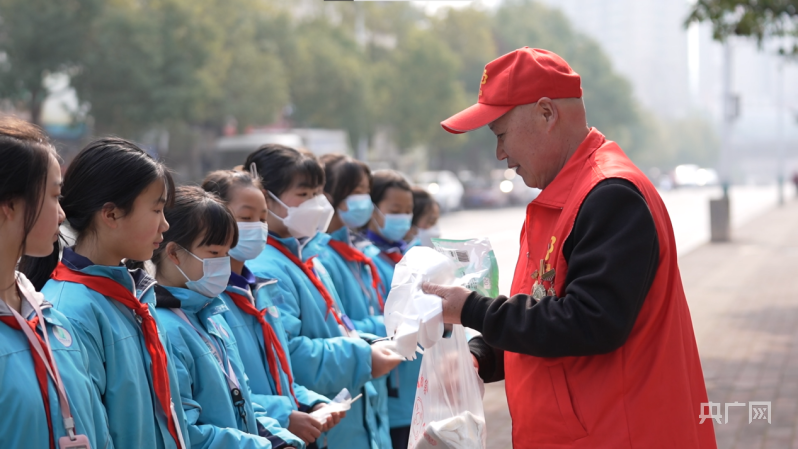 陈自祥带领小学生一起从事志愿服务活动(央广网发 通讯员 供图)