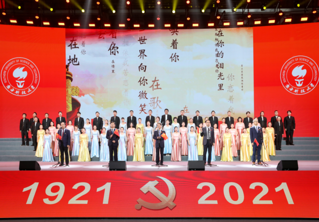 在南科大庆祝中国共产党成立100周年师生文艺演出中,薛其坤等五名中科院院士与师生代表齐唱《共和国之恋》。