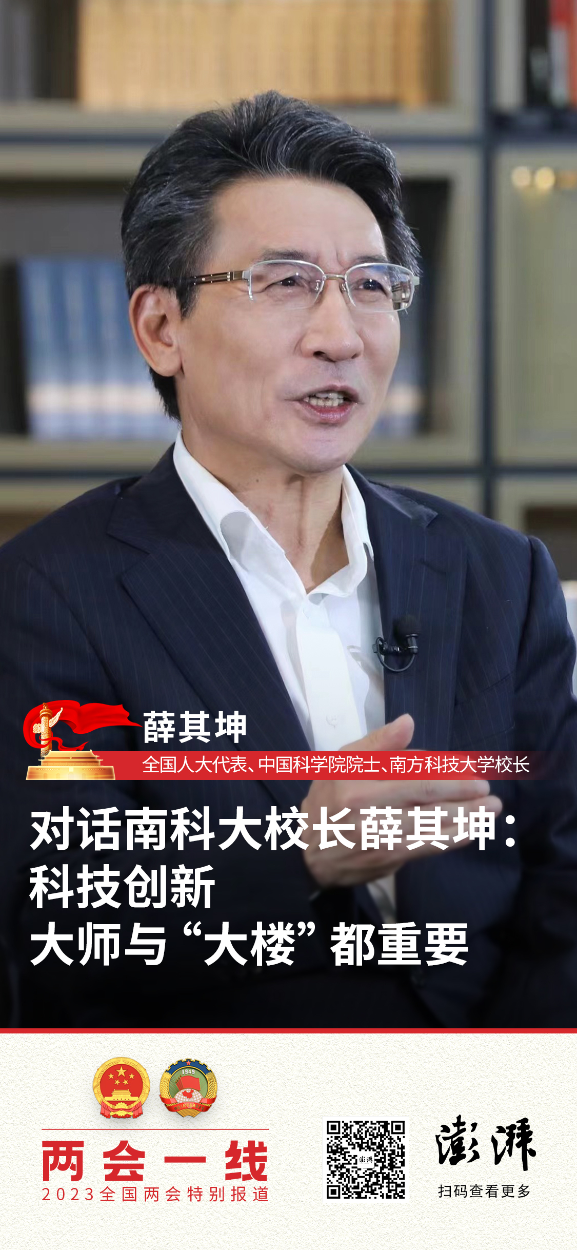 全国人大代表、中国科学院院士、南方科技大学校长薛其坤接受媒体采访。本文图片均由南方科技大学提供