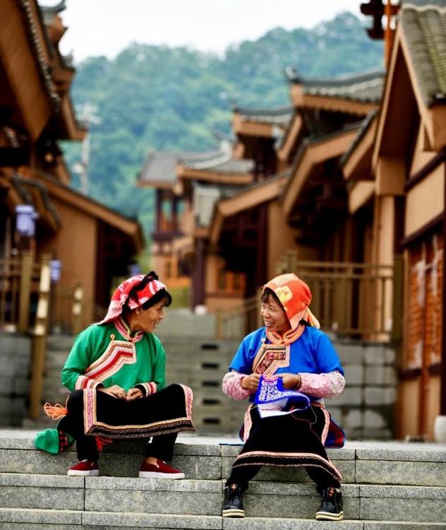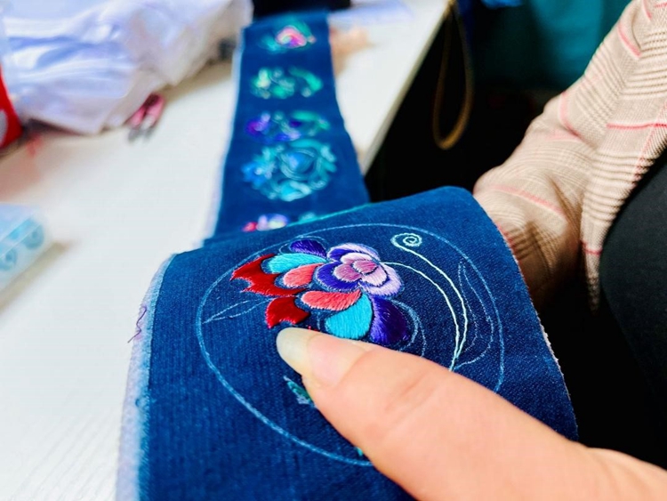 为带动家乡更多留守妇女稳定就业,2020年9月,李利将门店搬到阿妹戚托小镇,作为全国唯一一个“整乡搬迁”的彝族特色小镇,这里聚居着彝族、苗族、布依族等多个民族。“很多留守妇女会刺绣,她们的绣品非常精美,但苦于没有一个合适的平台来帮助她们。”李利的到来,带动激活了大家“指尖上的技艺”。