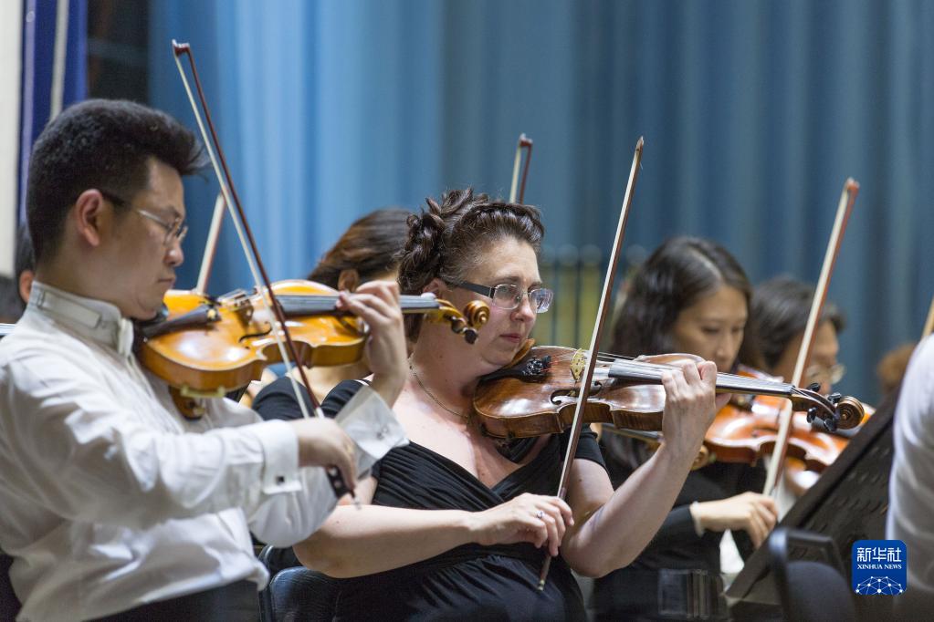 2016年7月6日,在俄罗斯伊尔库茨克,中俄音乐家在“中俄媒体交流年”专场音乐会上同台演奏。新华社记者 白雪骐 摄