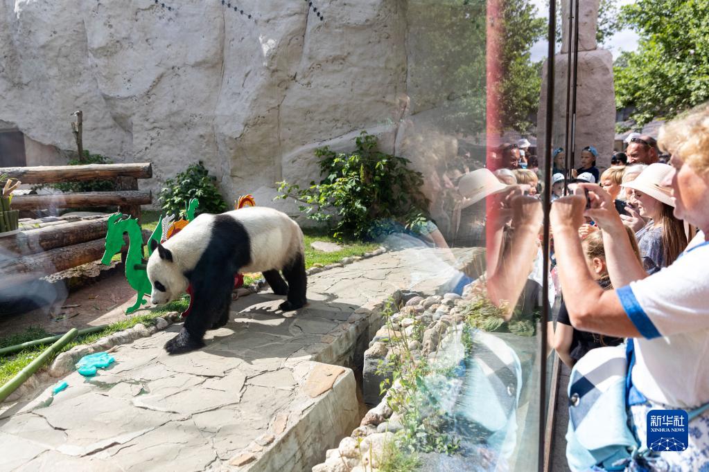 2022年7月31日,人们在俄罗斯莫斯科动物园观看中国大熊猫“如意”。新华社记者 白雪骐 摄