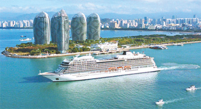 邮轮从三亚凤凰岛国际邮轮港离港出海。叶龙斌摄(影像中国)