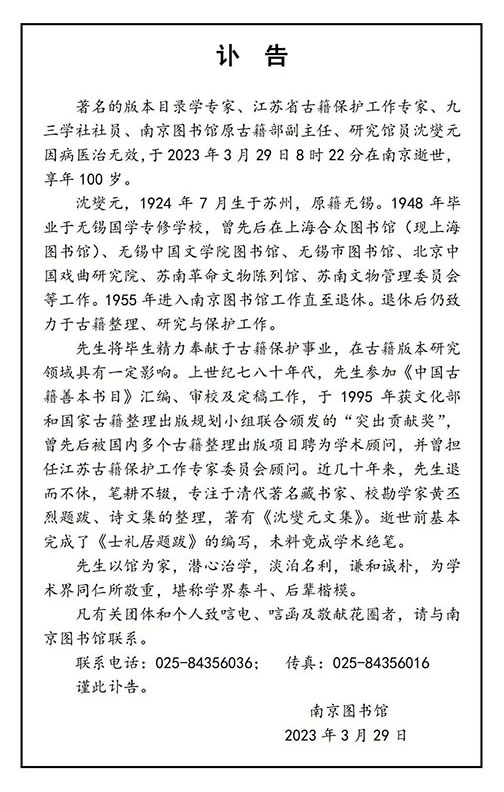 沈燮元曾说:“书是水,我是鱼。在图书馆工作,就像鱼在水里游。”“不要长命百岁,要活好每一天。”语不惊人,谦和诚朴,却接着热腾腾的地气,直抵人心。