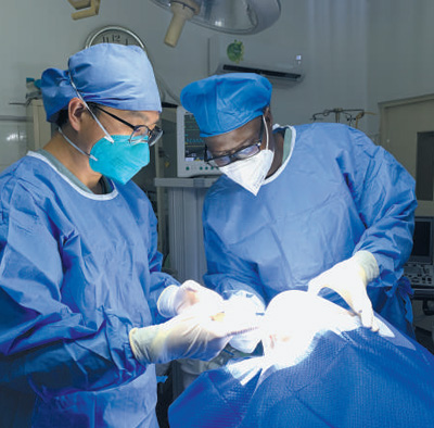在位于几内亚首都科纳克里的中几友好医院内,一场高难度的脑瘤切除手术正在进行。“进行超声检查,辅助评估肿瘤血供及矢状窦通畅情况!”“发现中1/3矢状窦肿瘤浸润闭塞,局部皮层回流静脉及代偿性的侧支循环静脉被肿瘤包绕!”……经过6小时的奋战,在中国第二十九批援几内亚医疗队神经外科专家、主刀医生张国滨和其他几名医护人员的不懈努力下,手术成功完成,患者终于化险为夷。