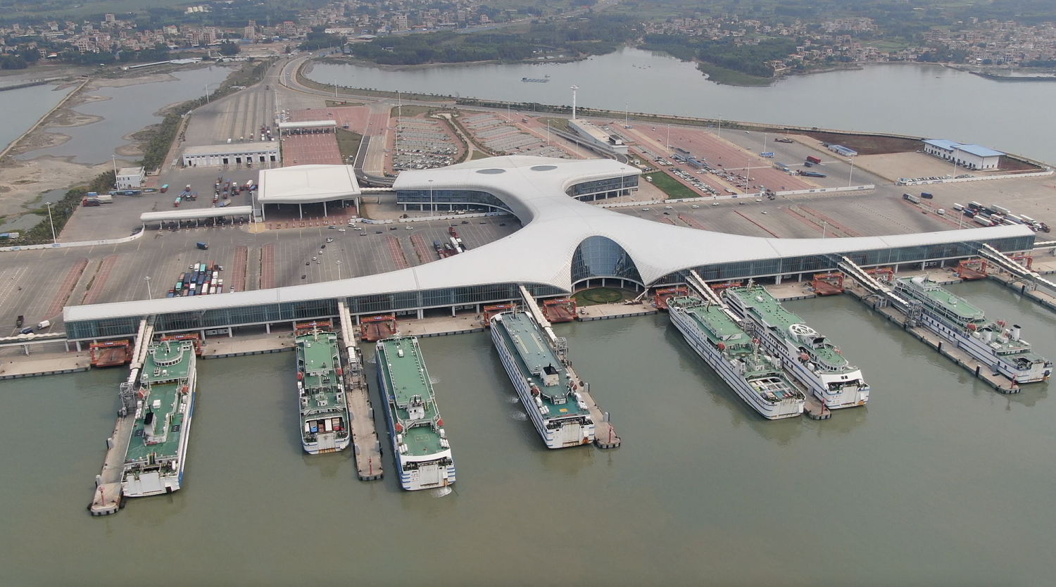 △全新设计的徐闻港综合交通枢纽大楼犹如展翅的海鸥。(总台央视记者范凯、邓裕达拍摄)