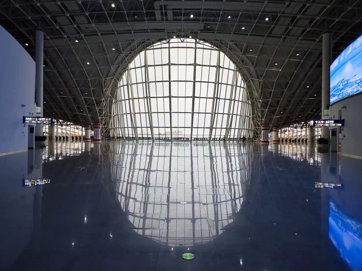 △徐闻港综合交通枢纽大楼的“得月门”独具特色,寓意“海上生明月”。(总台央广记者潘毅拍摄)