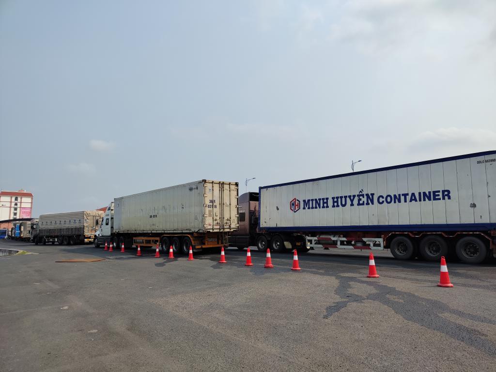 广西防城港东兴市边民互市贸易区货车在排队接受出入境边防检查。新华社记者黄耀滕 摄