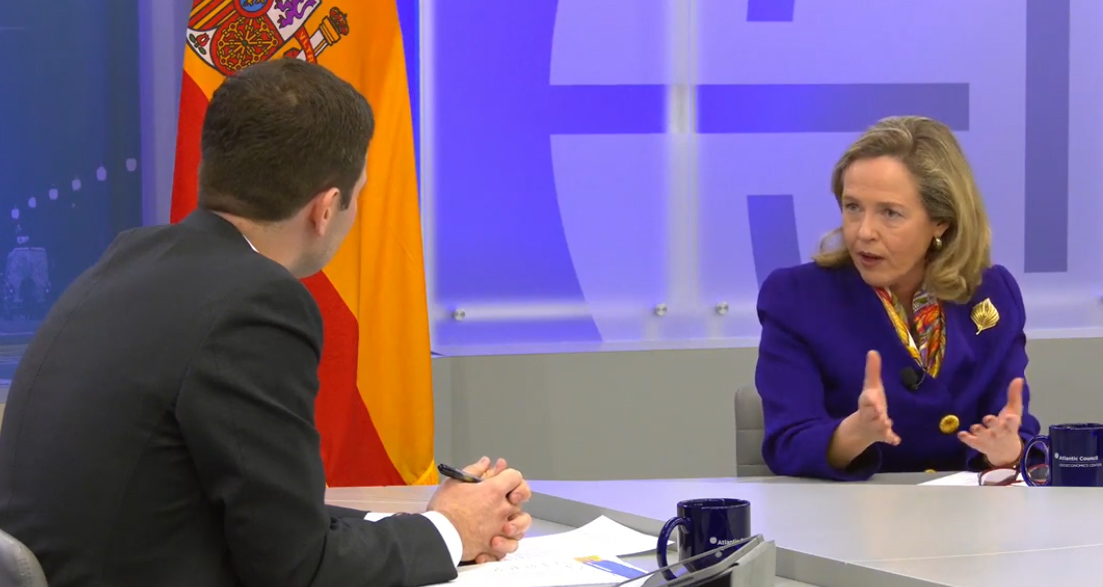 西班牙经济大臣卡尔维尼奥出席美国智库“大西洋理事会”活动 视频截图