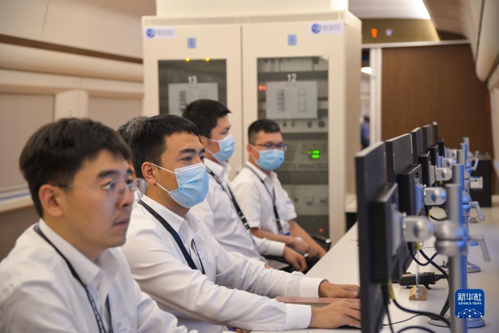 5月22日,在印度尼西亚雅万高铁沿线,工程师在进行联调联试的雅万高铁综合检测列车上进行接触网检测。新华社记者 徐钦 摄