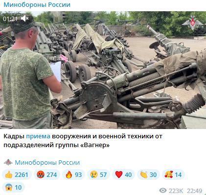 中新网7月13日电 据俄新社当地时间12日报道,俄罗斯国防部表示,正在接收俄私营军事实体瓦格纳集团的武器装备。