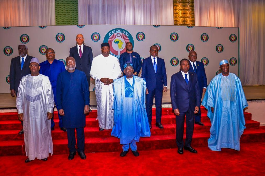7月30日,在尼日利亚首都阿布贾,参加西非国家经济共同体(西共体)紧急会议的西非国家领导人合影。新华社发(西共体供图)