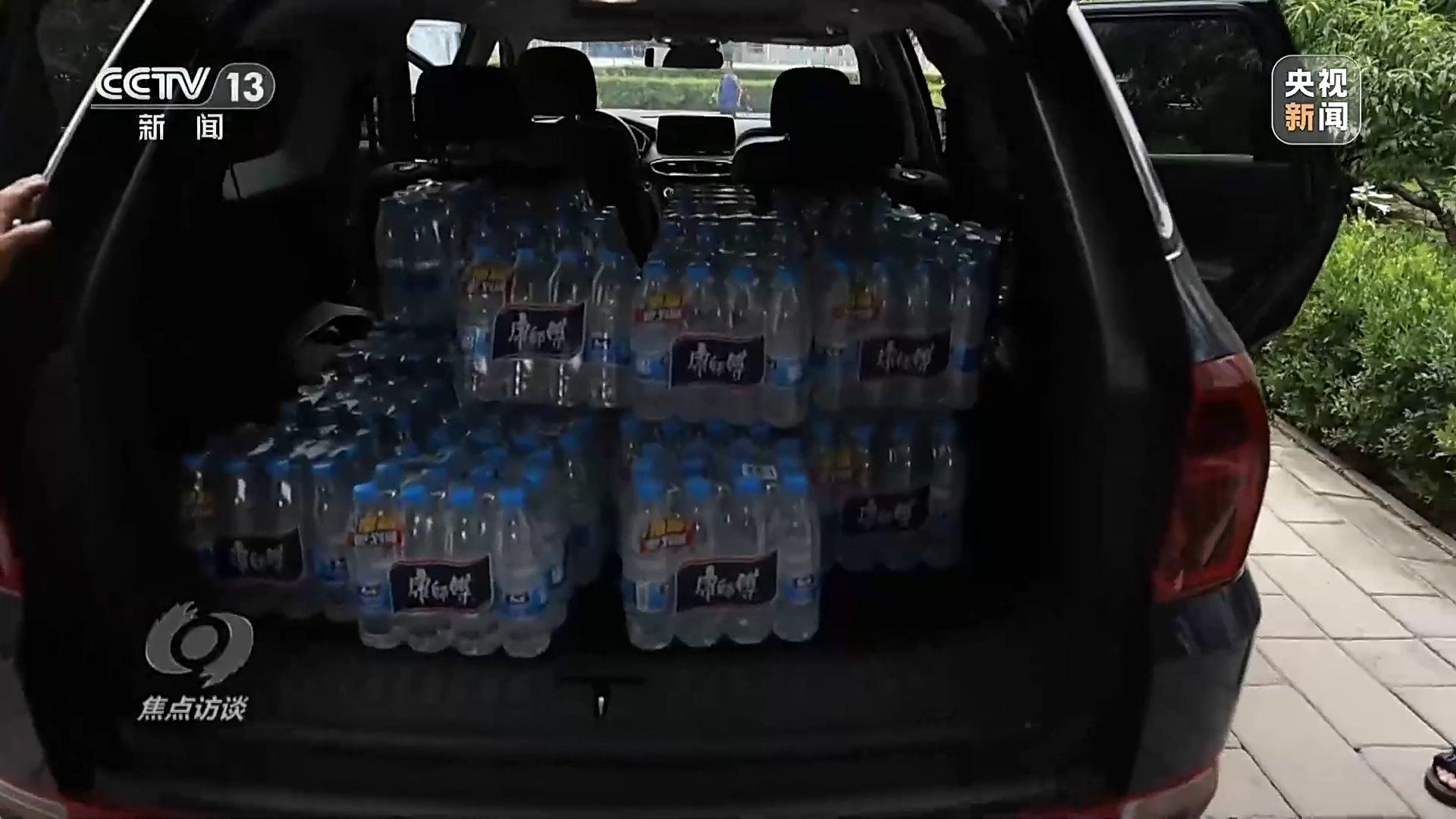 与此同时,社会各界也没有忘记这些受灾的村民。采访期间,正好赶上一位北京市民送来50件矿泉水。