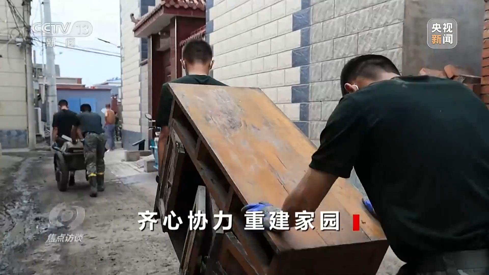 和大家一起并肩作战的,还有解放军、武警以及中铁建设集团等单位的专业力量,他们是灾后清理工作的主力军,记者在村里采访时总能见到他们的身影。因为很多路都非常狭窄,大型设备无法开进去,所以只能靠战士们一锹一锹铲,一点一点搬,没有一个人不是大汗淋漓。