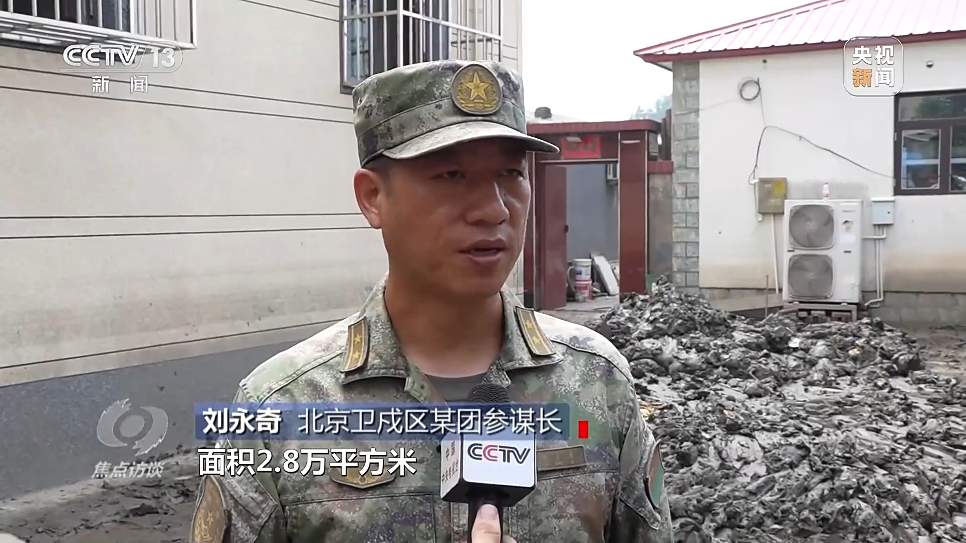 北京卫戍区某团参谋长 刘永奇:三天来,我们共清理道路27条,面积2.8万平方米,淤泥700余立方,废旧垃圾1300余立方,全面疏通了各条道路。
