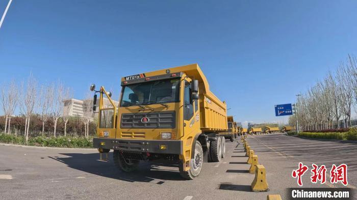 霍尔果斯公路口岸等待出境的工程车辆。李明 摄
