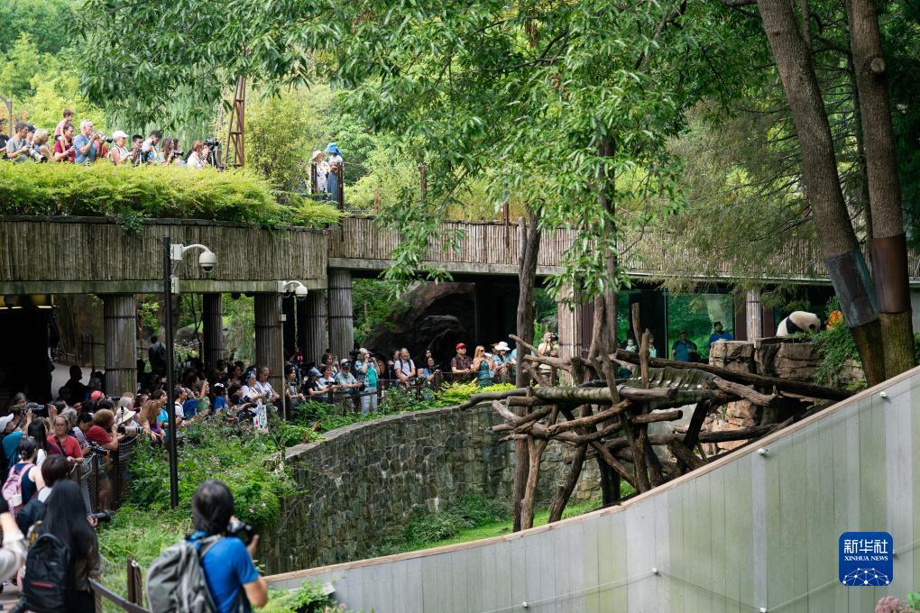 8月21日,游客在美国首都华盛顿史密森学会国家动物园观看大熊猫幼崽“小奇迹”过生日。新华社记者 刘杰 摄