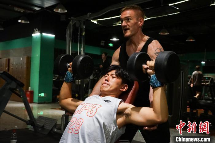 图为Alex在青海省西宁市一健身房内健身。 马铭言 摄