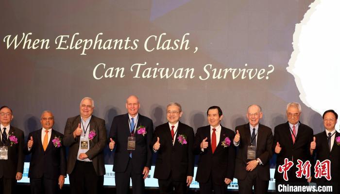 9月11日,台湾地区前领导人马英九(右四)在台北出席“2023地缘政治高峰论坛”时指出,鼓励两岸对话谋和才是对各方最有利的和平政策。 中新社记者 刘舒凌 摄