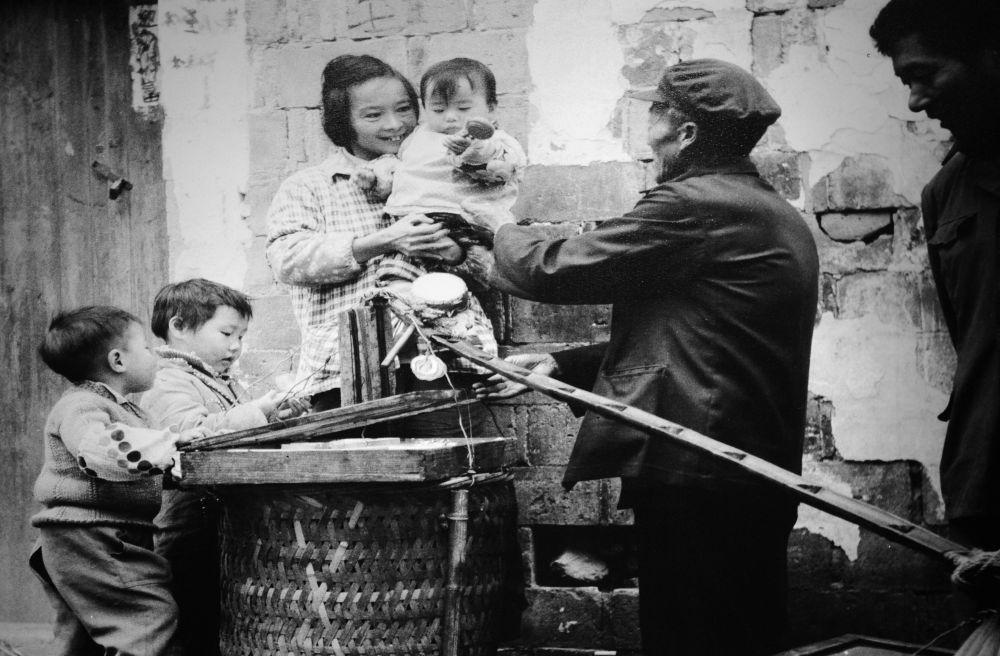 ↑义乌货郎“鸡毛换糖”(资料照片,摄于上世纪70年代)。