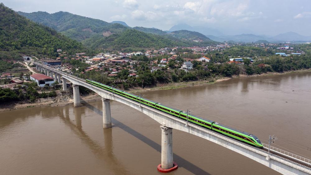 今年恰逢共建“一带一路”倡议提出十周年。十年来,“一带一路”倡议合作硕果累累,陆续建成的一系列标志性项目助力各国发展,为各国人民带来实实在在的好处。从空中俯瞰,这些“国家地标”尽显恢弘大气,成为“中国建造”的闪亮名片。 ↑2023年5月28日,中老铁路客运列车通过老挝琅勃拉邦湄公河特大桥(无人机照片)。中老铁路北起中国昆明,南抵老挝万象,全长1035公里,是“一带一路”共商合作、共建项目、共享红利的生动例证。截至10月3日,中老铁路开通运营满22个月,累计运输货物2680多万吨,其中进出境货运量550万吨,货物品类增加至2700多种。