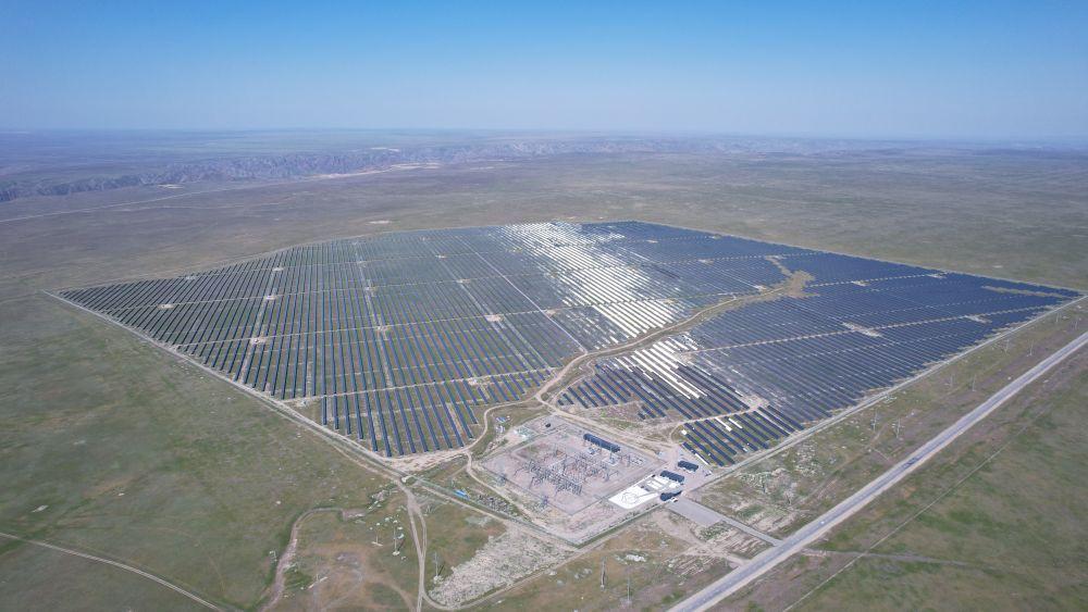 ↑这是2023年5月4日在哈萨克斯坦阿拉木图州拍摄的卡普恰盖100兆瓦光伏电站(无人机照片)。这是哈萨克斯坦单体最大的光伏发电项目之一,也是中哈绿色能源合作项目之一,由中国企业寰泰能源与哈萨克斯坦合作伙伴投资建设。