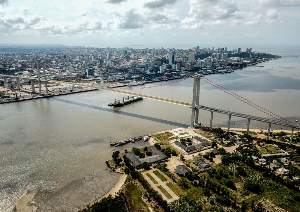 ↑这是2019年4月8日在莫桑比克首都马普托拍摄的马普托大桥(无人机照片)。超大悬索桥马普托大桥飞架天险,横跨马普托湾,该桥极大便利了马普托湾两岸交通,成为莫桑比克纵贯南北、连接南非的交通主干道的重要组成部分。
