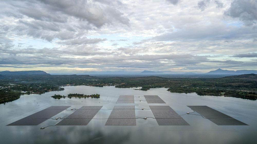 ↑这是2022年12月8日在泰国乌汶府诗琳通水库拍摄的浮体光伏项目(无人机照片)。据介绍,该项目共安装光伏组件14.4万余片,总装机容量58.5兆瓦,每年可以减少4.7万吨二氧化碳排放,助力泰国减少对高污染火力发电的依赖。