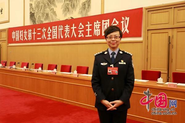 10月23日,中国妇女十三大代表、山西省太原市杏花岭区三桥派出所副所长杨蓉接受中国网采访。中国网记者 彭瑶 摄