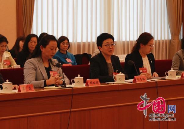 10月23日,中国妇女十三大中央和国家机关代表团举行会议,中国妇女十三大代表、全国妇联宣传部副部长鞠萍分享学习党中央致词感受。中国网记者 彭瑶 摄