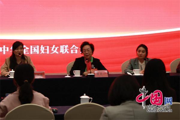 10月23日,中国妇女十三大代表与媒体见面会上,澳门妇女联合总会永远会长贺定一分享聆听开幕会感受。中国网记者 彭瑶 摄