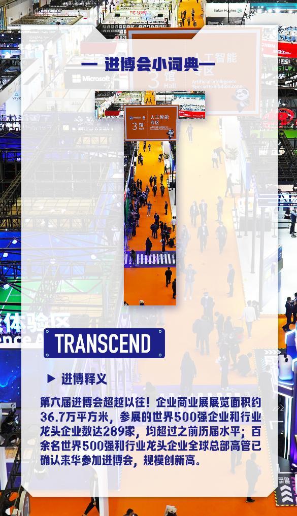 作为“不一般”(Spectacular)的展会,第六届进博会全面恢复线下举办。国家展72个参展方中,共有64个“一带一路”(Belt and Road Initiative)共建国家。在这里,“剧透”未来(X),超过400项新产品、新技术、新服务将在第六届进博会上集中展示,参展的世界500强和行业龙头企业数达289家,超越(Transcend)以往历届水平。进博会的“6天+365天”常年展示交易平台已拓展至60家,今年还将组织322家进博会展商走进地方,经贸合作有望再次迎来丰收(Harvest)。