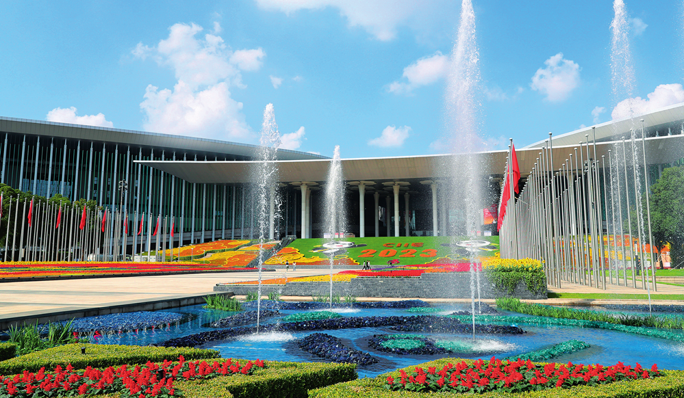 装饰一新的国家会展中心(上海)南广场(2023 年 10 月 24 日摄)方喆摄 / 本刊